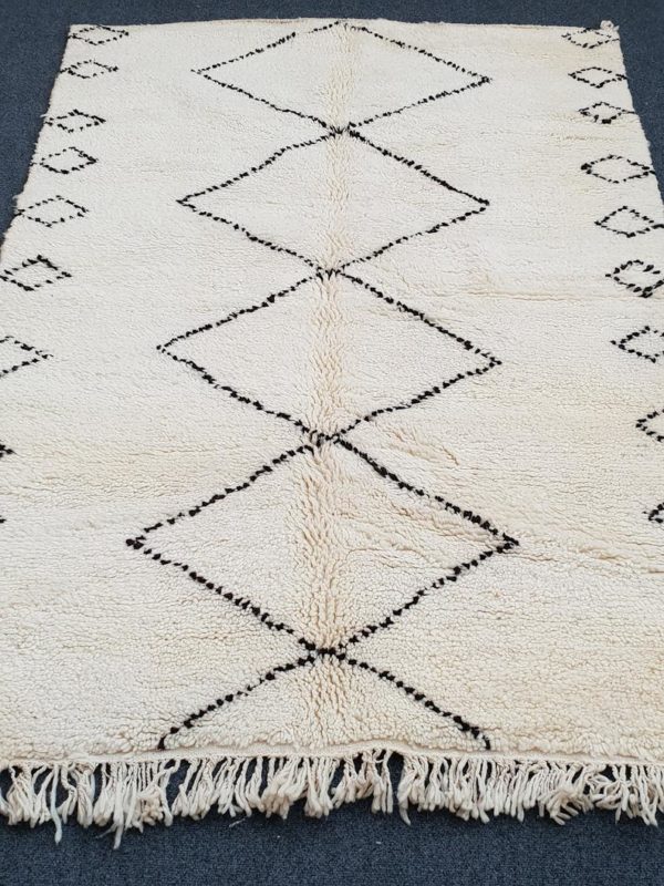 The Beni Ourain tribe is known for its high-quality white Moroccan wool carpet, which are decorated with geometric shapes such as stripes or diamonds.