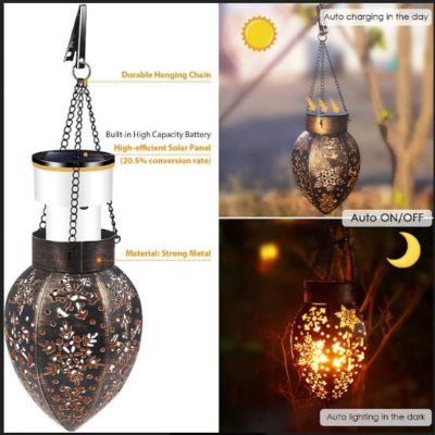 Solar lantern is IP65 waterproof and weather resistant, allowing it to blossom fearlessly without fear of rust or damage. It can stand for different weather, in hot, rain, cold, snow, and frost. It is ideal for outdoor usage without the risk of rust or damage of any type.