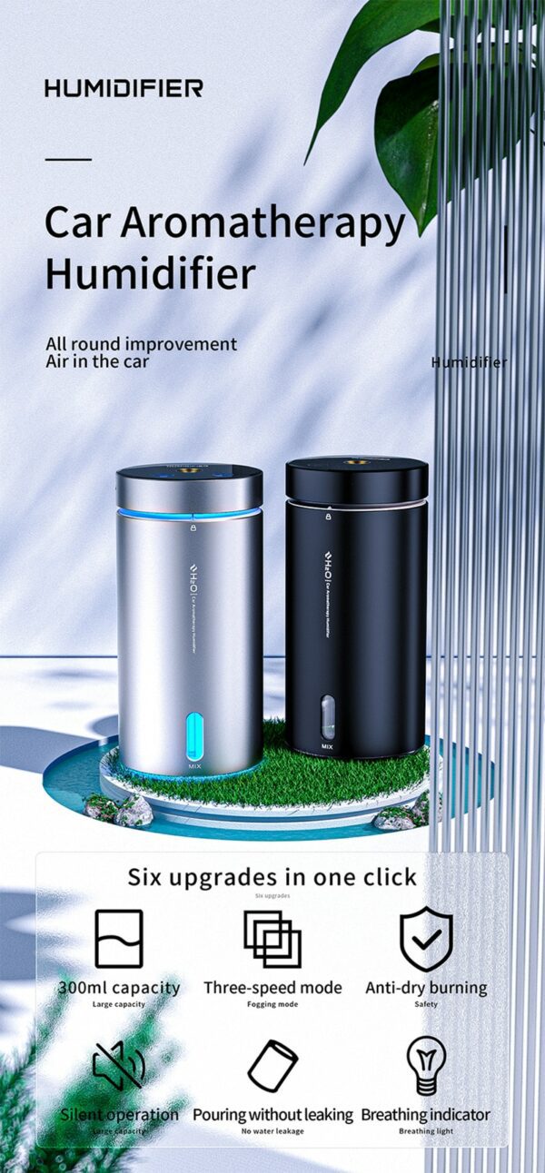 A popular product! A luxurious vehicle humidifier can help you breathe easier while you’re driving or anyplace else. It comes in black or grey and is tiny enough to fit in any bag.