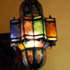 This Demna lantern evokes a sense of mystery, intrigue, and antiquity. It is heavily detailed, with textured, colored glass and filigree metal frames that are intricately crafted by Moroccan artisans. The lantern has a size of 27” tall x 11” wide which is perfect for small space.