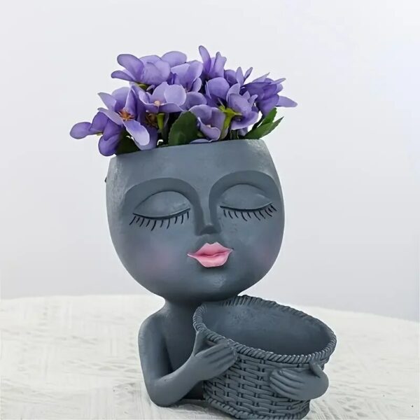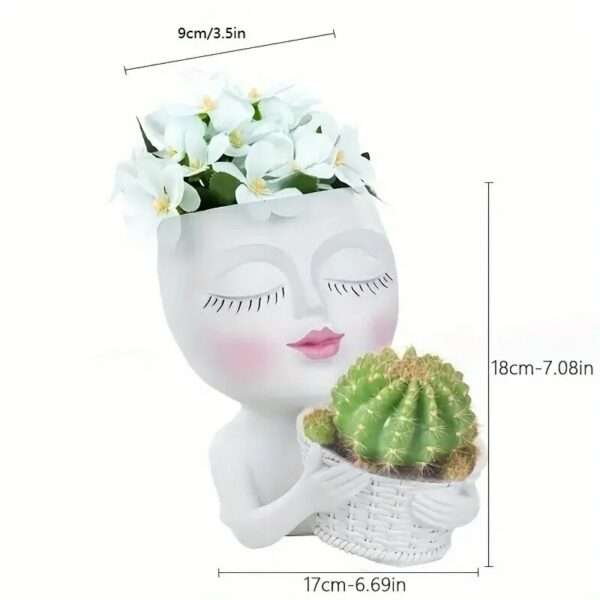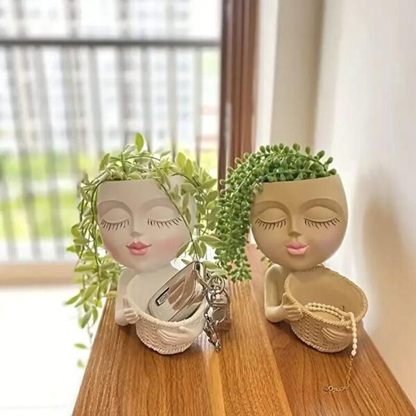 A female head indoor plant pot with a drainage hole is perfect for small succulents, artificial flowers, and medium-to-large air plants. This lovely artwork of a woman’s face would look great in your living room, office, or bedroom. To make it look like hair, add a string of pearls or other plants. Put this eye-catching item in your house or give it as a present.