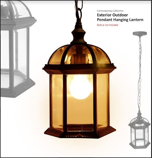 Your home’s façade is completed with a magnificent marble-look matte black body finish and a nicely designed beveled clear glass body. Place this Pendant Lantern at the front or rear of your home. It also works well as a decorative element on your porch, deck, patio, or balcony. With beveled clear glass, this light is built of robust Aluminum Die-Cast. This light utilizes a single Incandescent or Compact Fluorescent bulb and is Underwriter Laboratories (UL) rated for safety.